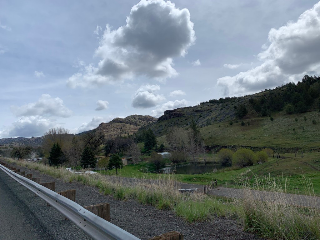 We started the day today with a long but shallow climb out of Mitchell, which was followed by an even longer breath-taking descent. At every corner I wished I could stop and take a new photo; the views were stunning. The sun was out when we started, but by early afternoon the wind and rain had come back out to play. What’s going on, Oregon? Thankfully I’d kept my long layers handy, and I bundled up for the rest of the descent into the fossil museum.